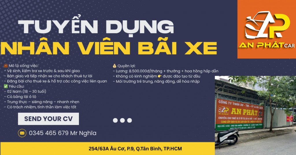 Tuyển 2 Nv Nam Bãi Xe Tphcm Không Yêu Cầu Kn
