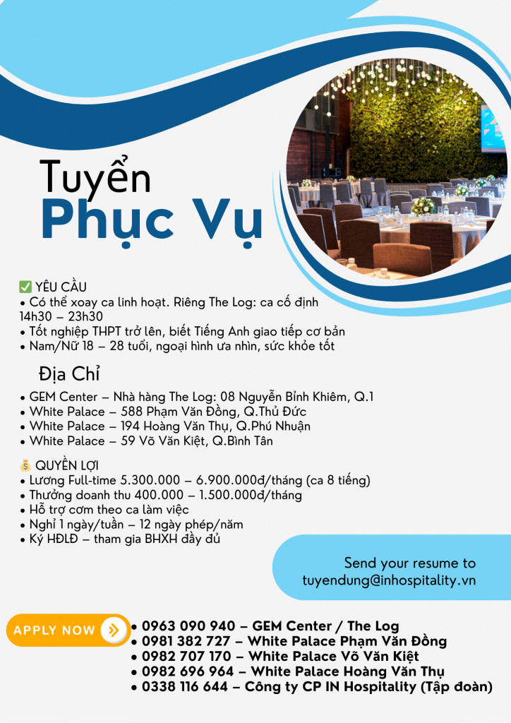 TUYỂN DỤNG NHÂN VIÊN PHỤC VỤ FULL-TIME & PART-TIME
