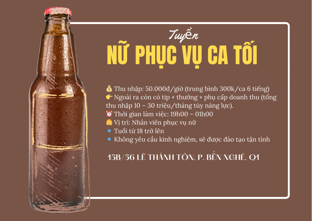 TUYỂN DỤNG NỮ NHÂN VIÊN PHỤC VỤ CA TỐI 19H-1H