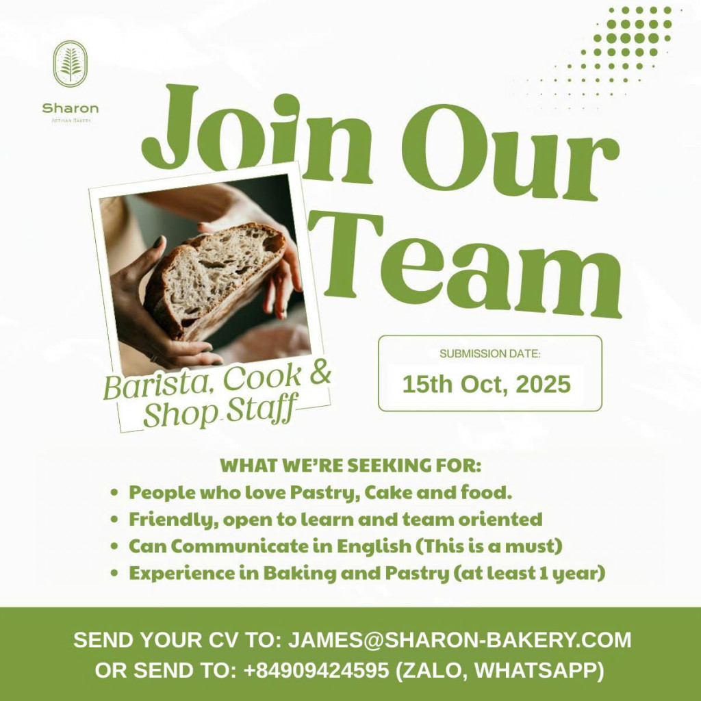 📍 Nơi làm việc: SHARON ARTISAN BAKERY Hoàn Kiếm, Hà Nội