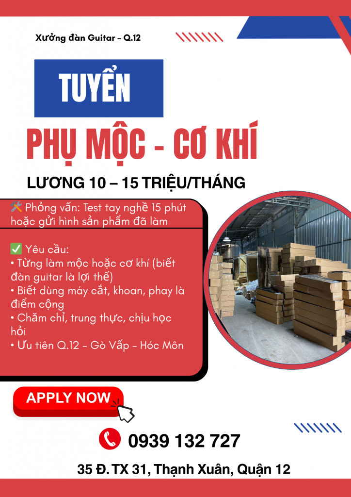 • Từng làm mộc hoặc cơ khí (biết đàn guitar là lợi thế)