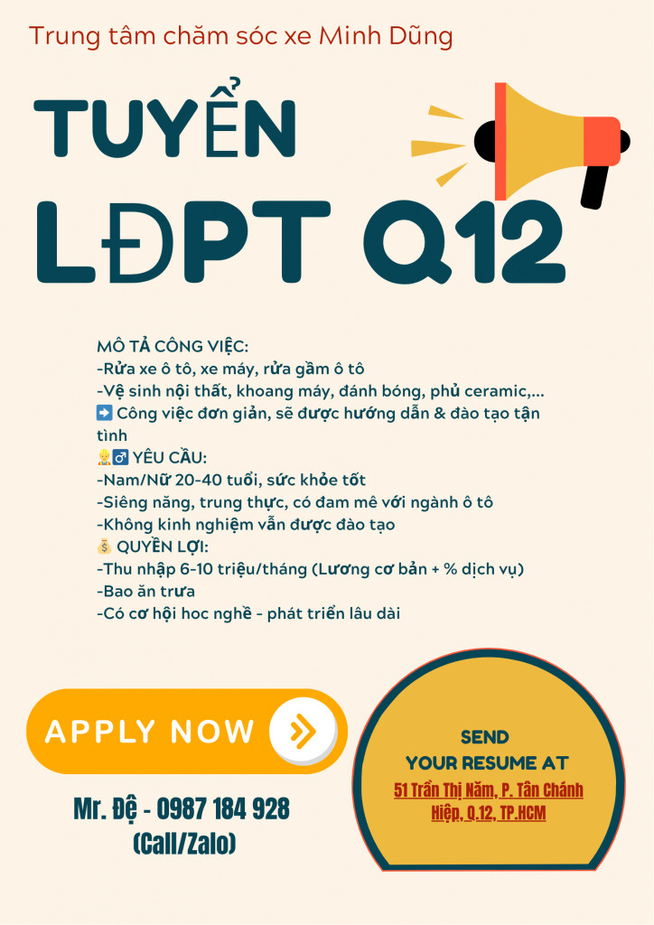 🚗 TUYỂN GẤP LAO ĐỘNG PHỔ THÔNG – LÀM VIỆC TẠI QUẬN 12 🚗