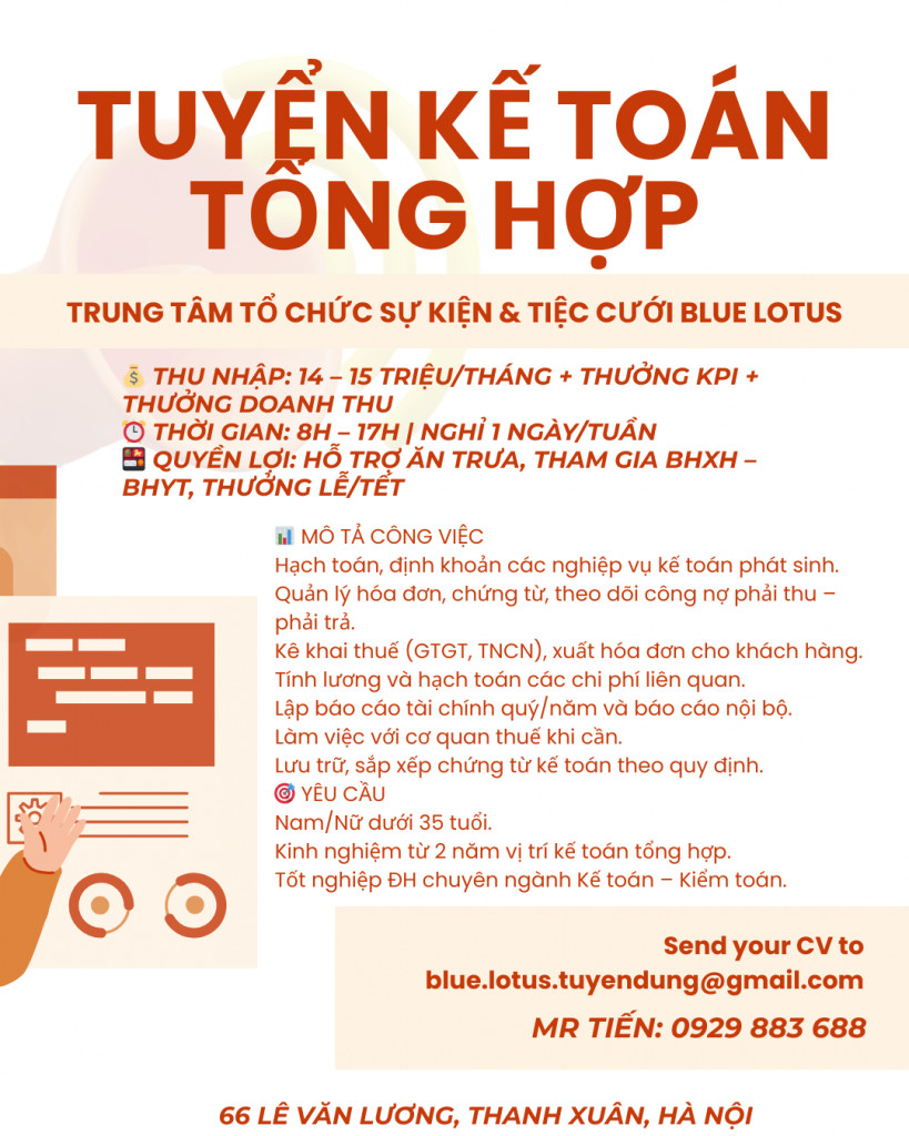 🔥 BLUE LOTUS TUYỂN DỤNG KẾ TOÁN TỔNG HỢP 🔥