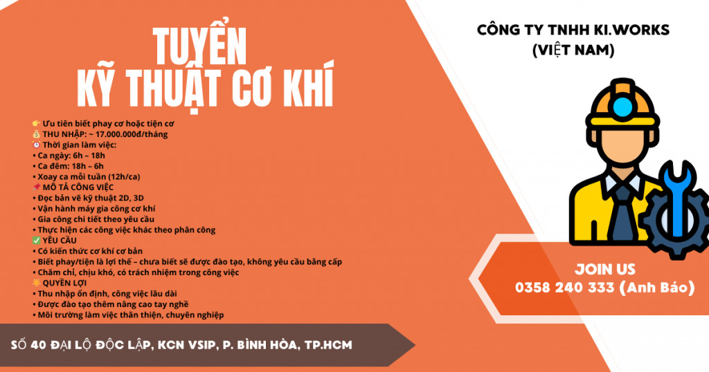 🔥 TUYỂN DỤNG KỸ THUẬT CƠ KHÍ – THU NHẬP ỔN ĐỊNH 🔥