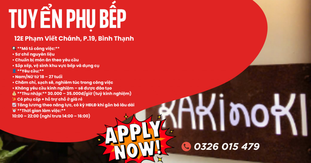 🔥 **NHÀ HÀNG KAKINOKI TUYỂN PHỤ BẾP – ĐI LÀM NGAY** 🔥