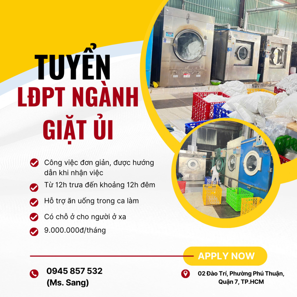 Tuyển Lao động phổ thông Quận 7 (NGÀNH GIẶT ỦI)