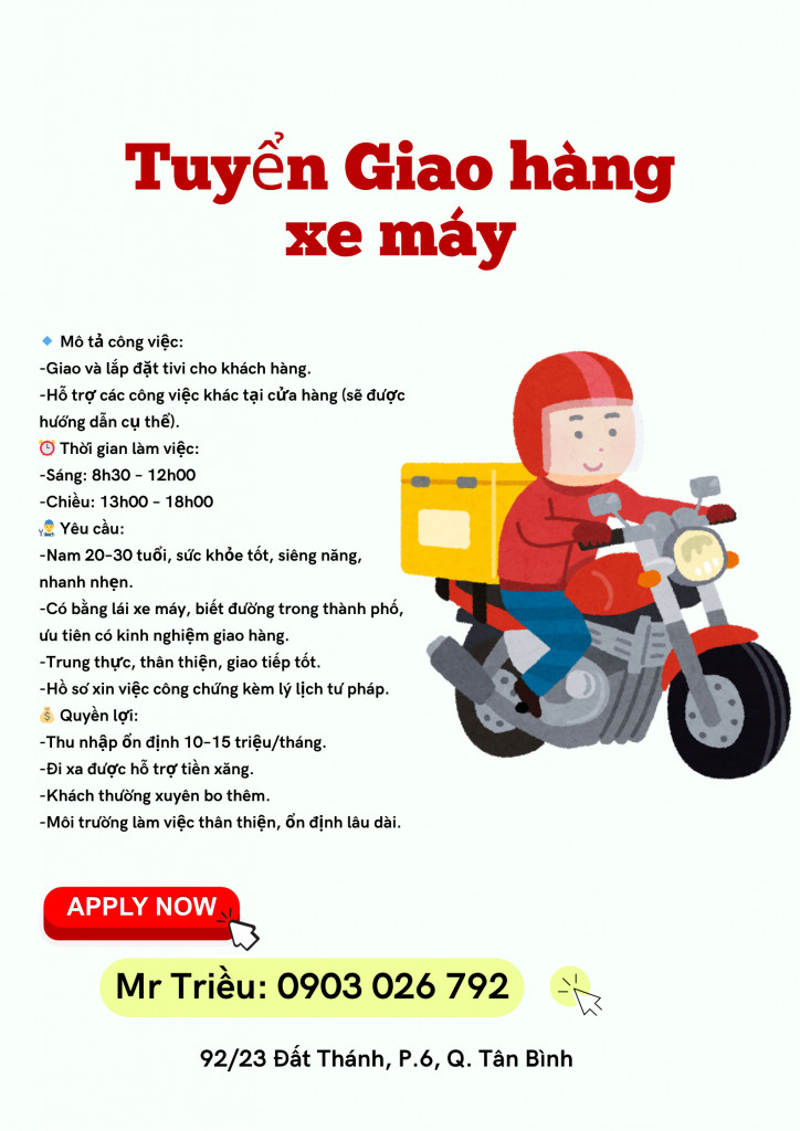 📦 CẦN TUYỂN NAM GIAO HÀNG BẰNG XE MÁY 📦