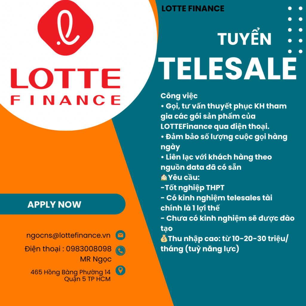 📢📢LOTTE FINANCE TUYỂN DỤNG NHÂN VIÊN BÁN HÀNG QUA ĐIỆN THOẠI
