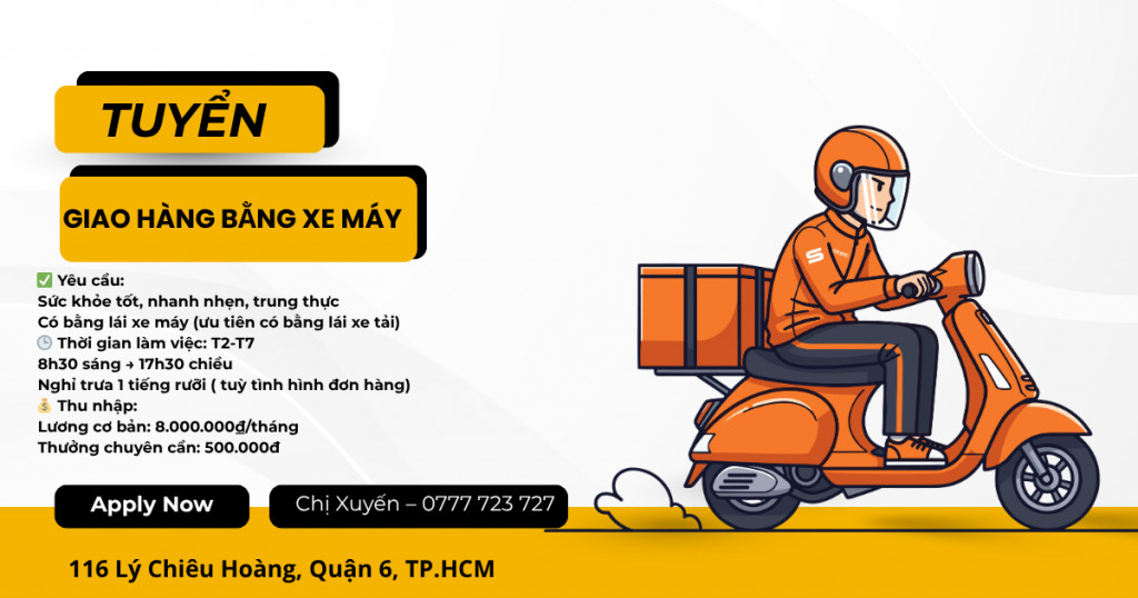 🚚 Vị trí: Nhân viên giao hàng (khu vực Q.6, Q.5, Bình Tân và lân cận)