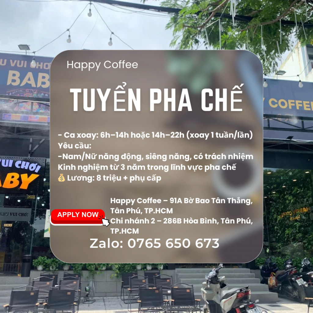 ☕ TUYỂN NHÂN VIÊN PHA CHẾ CÓ KINH NGHIỆM – TÂN PHÚ ☕