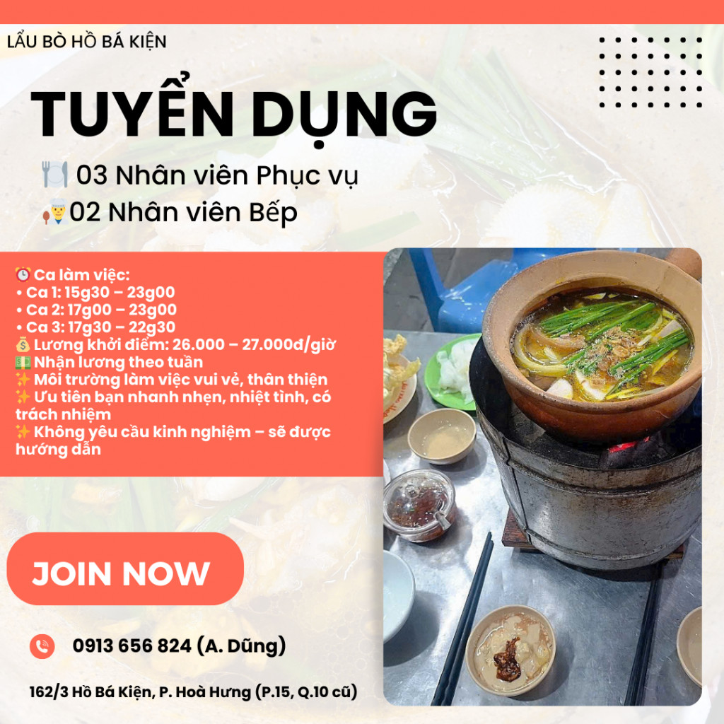 🔥 QUÁN LẨU BÒ HỒ BÁ KIỆN TUYỂN DỤNG 🔥