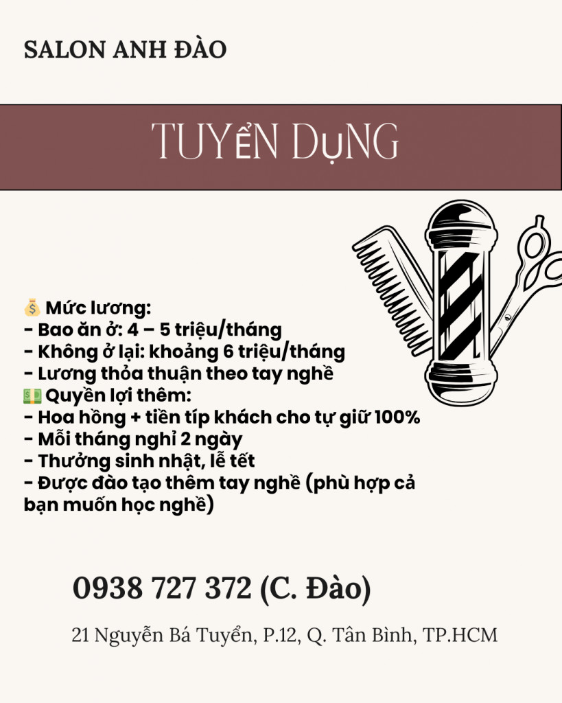 Tuyển Nhân viên Salon Tóc ANH ĐÀO Tân Bình