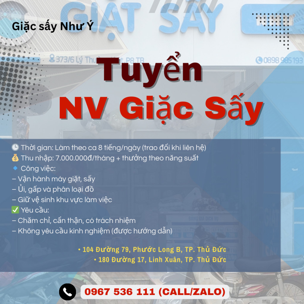 📢 TUYỂN NHÂN VIÊN TIỆM GIẶT SẤY