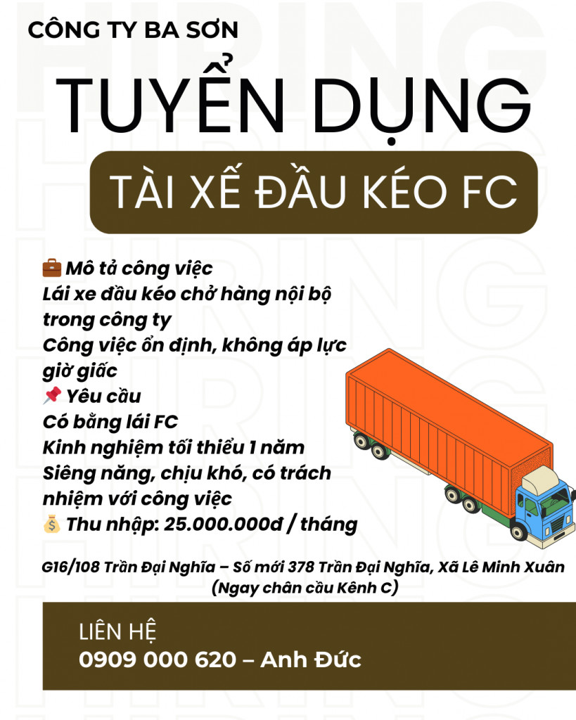 Tuyển Tài xế đầu kéo Bình Chánh
