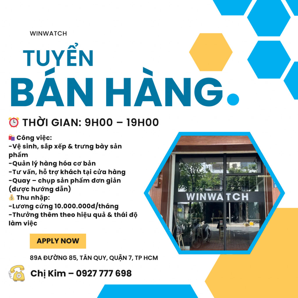 WINWATCH TUYỂN NHÂN VIÊN CỬA HÀNG – LƯƠNG 10 TRIỆU/THÁNG 🔥