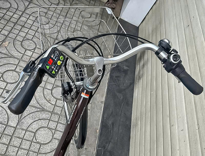 - Bảng điều khiển xanh màn hình lớn hiển thị % pin và báo tốc độ điện tử, Dự báo quãng đường trợ lực còn lại.