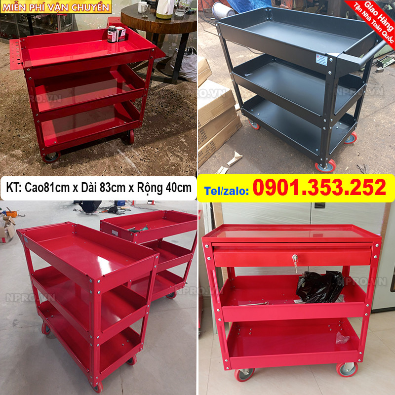 Xe đẩy đồ nghề 3 ngăn cao 81cm, bánh xe lớn dễ dàng di chuyển chịu ma sát đường tốt, là sản phẩm của Npro dành riêng cho người thợ Việt Nam với các lợi ích nổi bật.