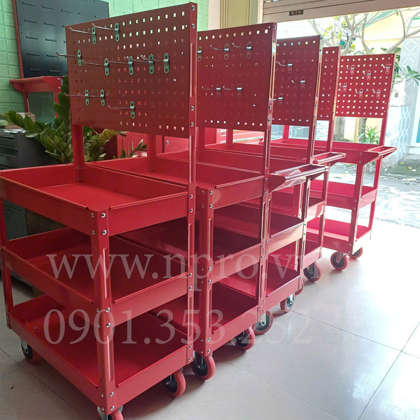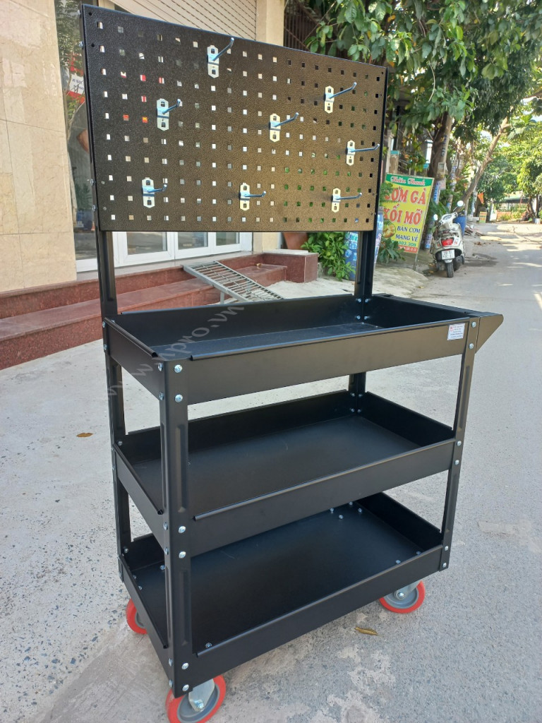 Xe đẩy 3 ngăn có giá treo dụng cụ